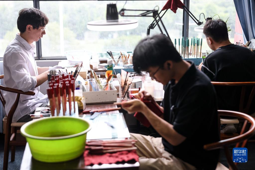 27歲的袁建是貴州大學(xué)工業(yè)設計系應屆畢業(yè)研究生。2020年,袁建在貴州大學(xué)國家大學(xué)科技園創(chuàng )立自主高端鋼筆品牌,將金屬雕刻、陶瓷制作、漆器工藝等傳統技藝融入到鋼筆制作之中,使其具有獨特的東方美學(xué)氣質(zhì),每支鋼筆的制作周期都在四個(gè)月以上。