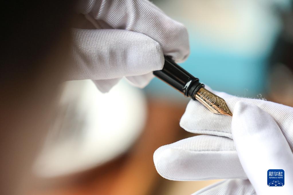 7月1日,袁建在位于貴州大學(xué)國家大學(xué)科技園的工作室組裝鋼筆。