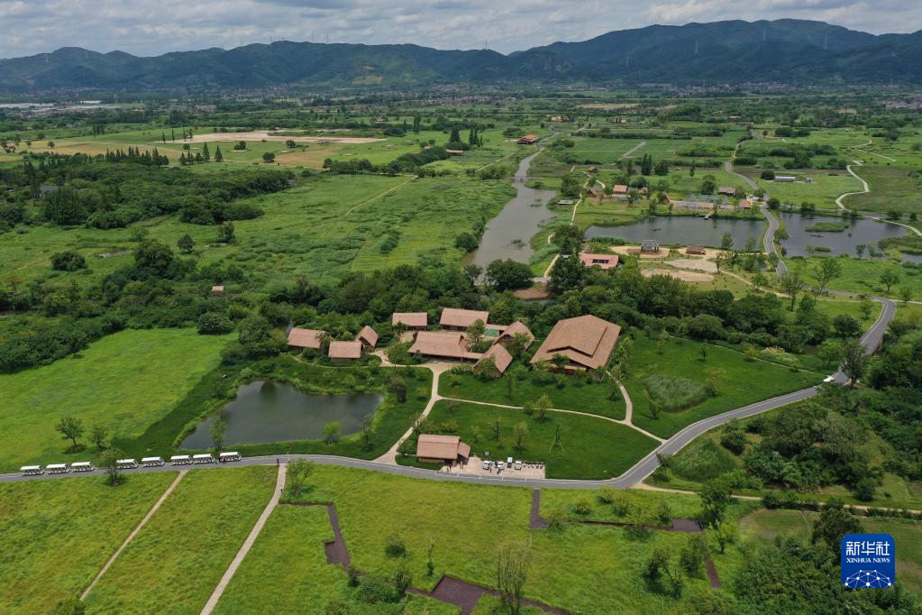 7月6日拍攝的良渚古城遺址公園(無(wú)人機照片)。
