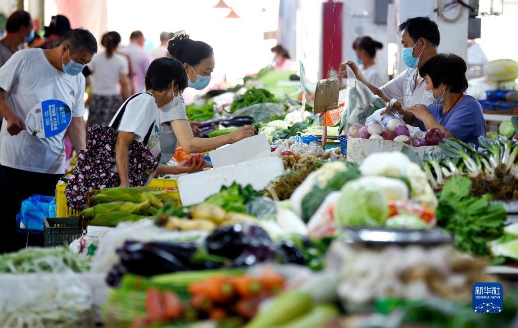 7月7日,市民在西安市未央區一農貿市場(chǎng)內選購蔬菜。
