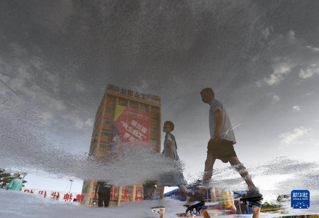 游客在大武口洗煤廠(chǎng)工業(yè)遺址公園內游玩(7月9日攝,照片翻轉180度)。