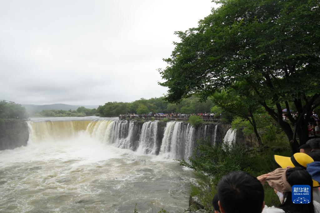 受上游來(lái)水量增多等因素影響,近日,位于黑龍江省牡丹江市的鏡泊湖世界地質(zhì)公園水量持續增加,景區內的吊水樓瀑布出現“三面溢流”壯觀(guān)景象。