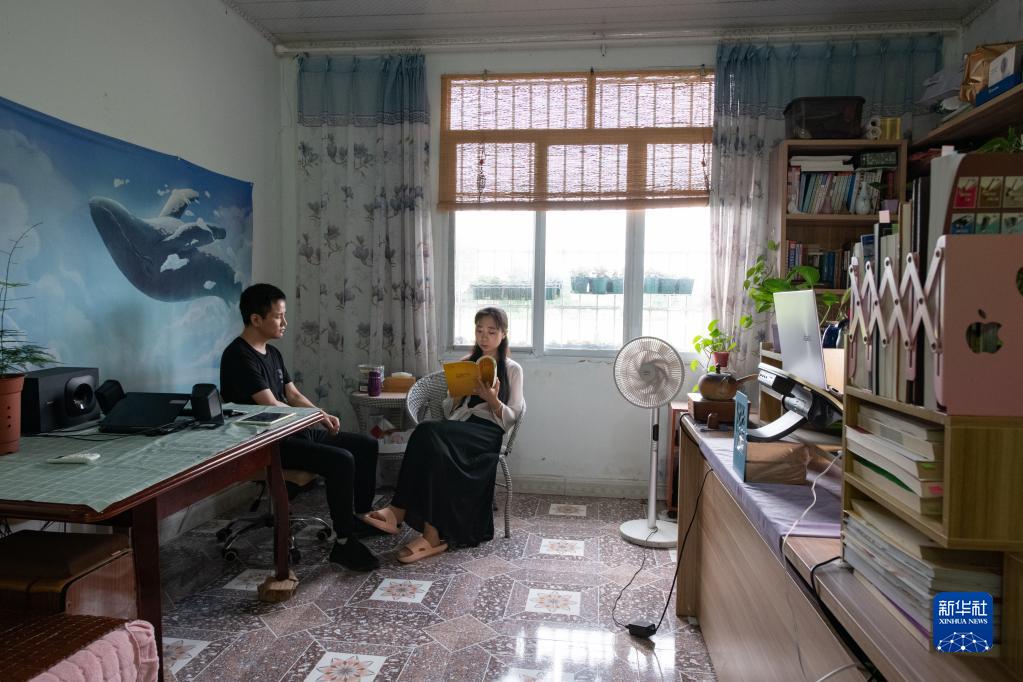 在四川省什邡市馬井鎮同心村,宇曉為王忠禮讀書(shū)(8月2日攝)。