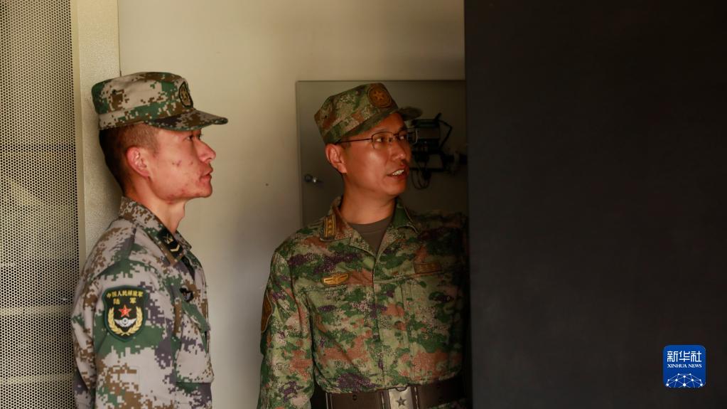 西部戰區聯(lián)合參謀部某局處長(cháng)王道彬(右)在一線(xiàn)單位檢查信息系統設備運行維護情況(2022年7月14日攝)。
