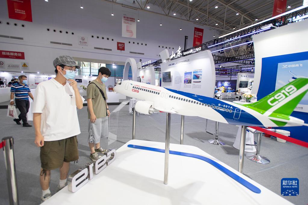 8月5日,觀(guān)眾在中國商飛展廳參觀(guān)。