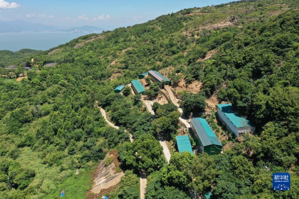 這是位于崳山島上的福鼎市特色農業(yè)產(chǎn)業(yè)示范基地的山羊養殖場(chǎng)(8月5日攝,無(wú)人機照片)。