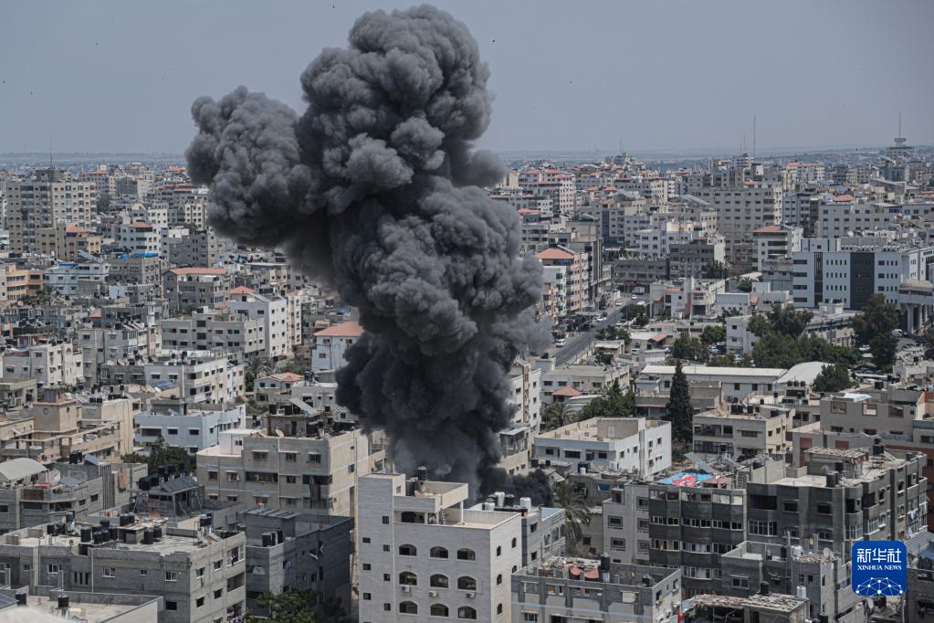 8月6日,加沙城遭遇空襲后升起濃煙。