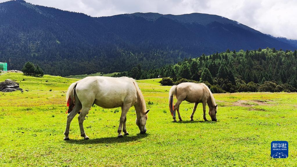 夏日的魯朗鎮,溪水潺潺,鮮花盛開(kāi),藏式村寨點(diǎn)綴其間,勾畫(huà)出一幅恬靜、優(yōu)美的“高原山居圖”。