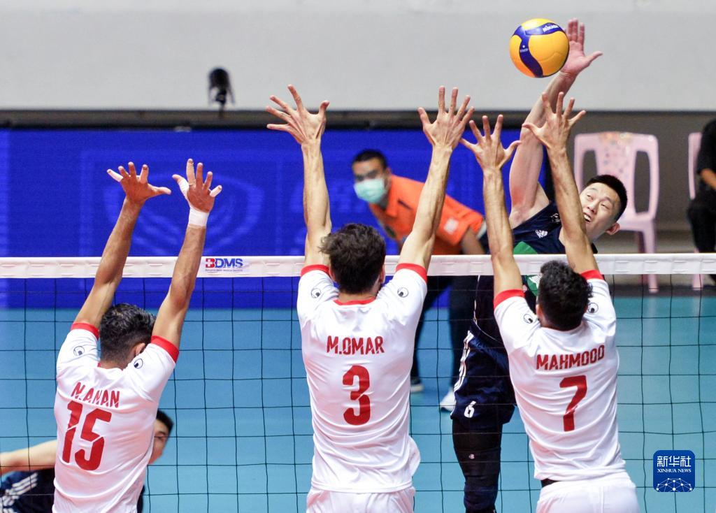 當日,在泰國佛統舉行的2022年男排亞洲杯小組賽中,中國隊以3比1擊敗巴林隊。新華社發(fā)(拉亨攝)