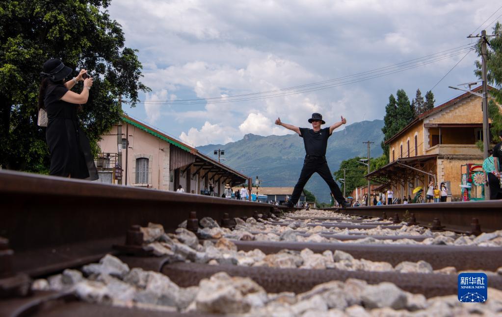 游客在云南省蒙自市碧色寨火車(chē)站景區游覽(8月9日攝)。