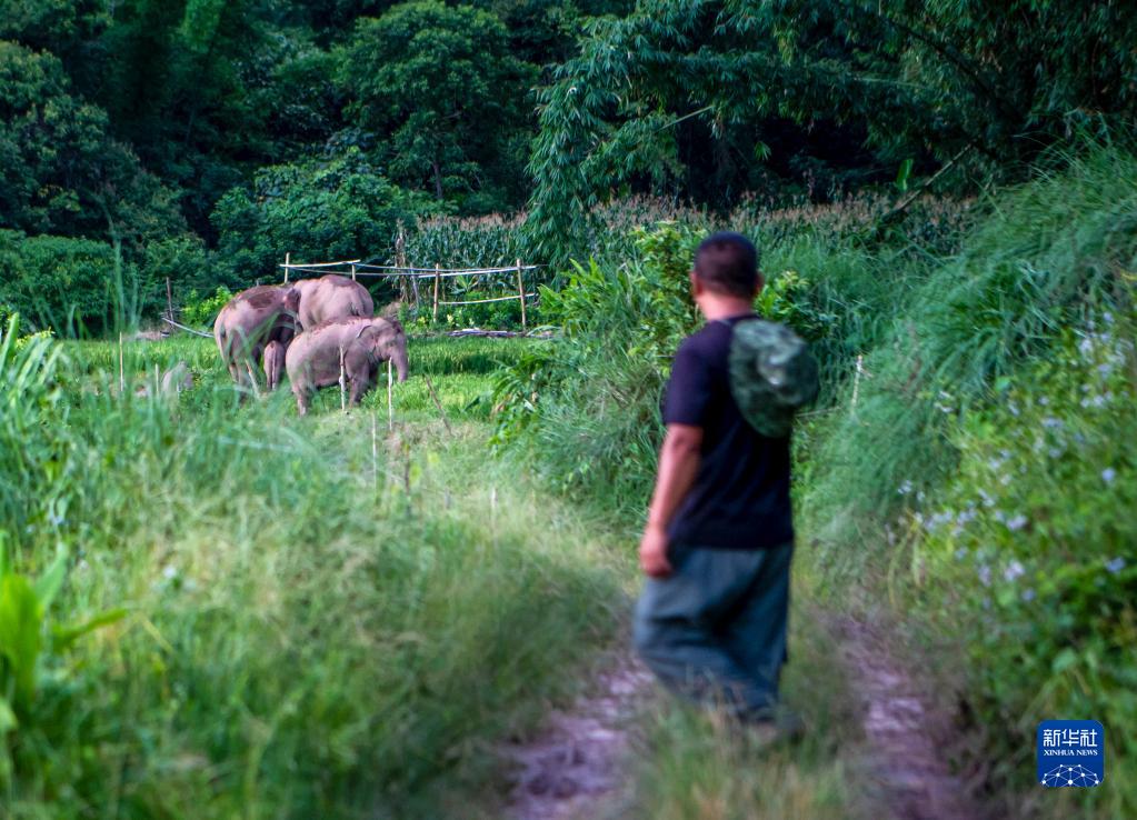 刁發(fā)興在觀(guān)察象群(8月1日攝)。新華社記者 江文耀 攝