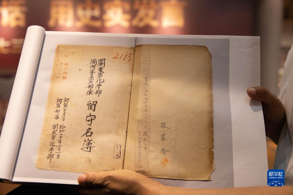 這是侵華日軍第七三一部隊罪證陳列館首次公開(kāi)的《關(guān)東軍化學(xué)部留守名簿》(8月13日攝)。
