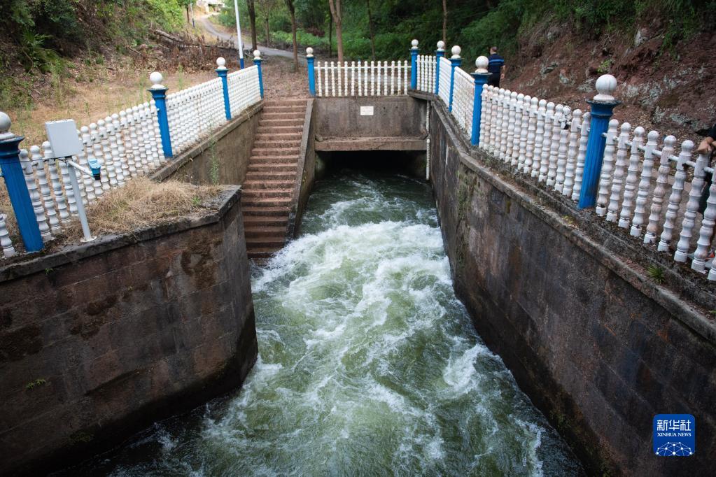 這是8月15日在桃源縣三里溪水庫干渠渠首拍攝的開(kāi)閘后的景象。