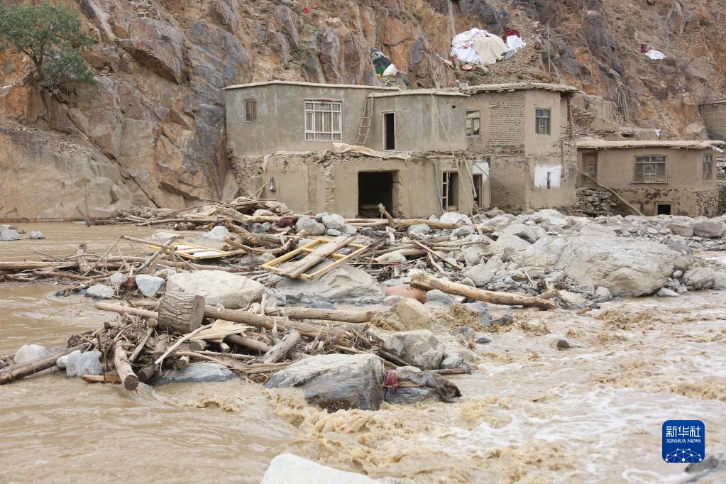 這是8月15日在阿富汗東部帕爾萬(wàn)省拍攝的被洪水損毀的房屋。