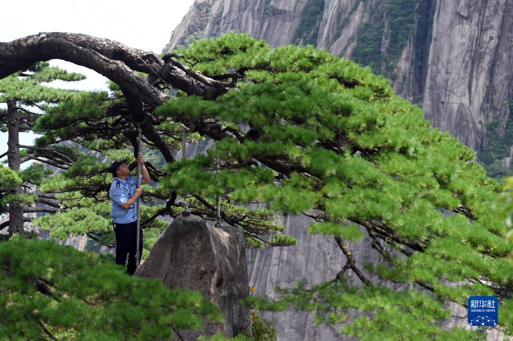 云海、奇石、迎客松……黃山上的這些風(fēng)景令許多游客印象深刻。在游玩時(shí),大家也許還會(huì )遇見(jiàn)這樣一些人:他們或拿著(zhù)設備獨自守護在迎客松旁,或在峭壁上攀爬清理垃圾……他們日復一日地守護著(zhù)美麗的黃山。