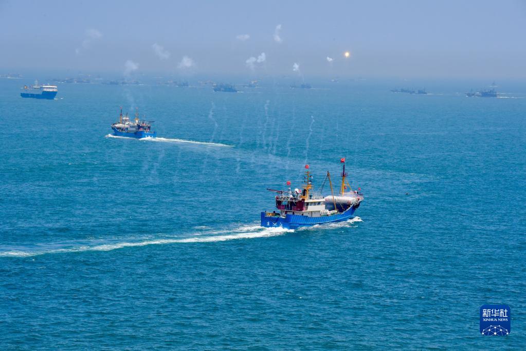當日12時(shí),福建省部分海域(北緯26度30分以南的福建海域)結束為期三個(gè)半月的伏季休漁期,漁民開(kāi)始出海作業(yè)。在福建省福州市連江縣海域,近千艘漁輪分別從黃岐、苔菉兩個(gè)中心漁港駛向東海。