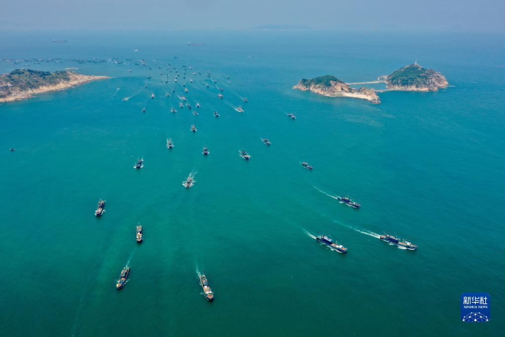 當日12時(shí),福建省部分海域(北緯26度30分以南的福建海域)結束為期三個(gè)半月的伏季休漁期,漁民開(kāi)始出海作業(yè)。在福建省福州市連江縣海域,近千艘漁輪分別從黃岐、苔菉兩個(gè)中心漁港駛向東海。