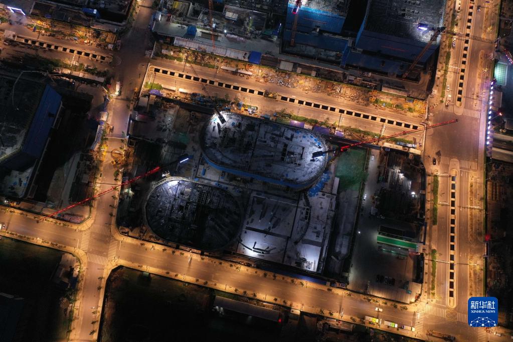 河北雄安新區容東片區雄安·電建智匯城建設項目夜景(8月17日攝,無(wú)人機照片)。
