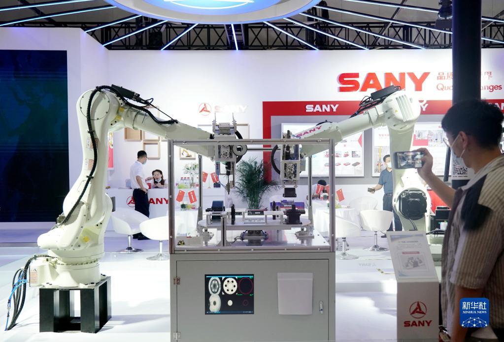 這是8月18日在2022世界機器人博覽會(huì )上拍攝的工業(yè)機器人。