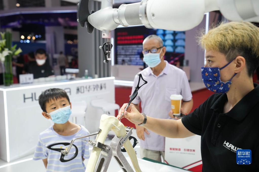 8月18日,工作人員在2022世界機器人博覽會(huì )上演示一款骨科手術(shù)機器人。