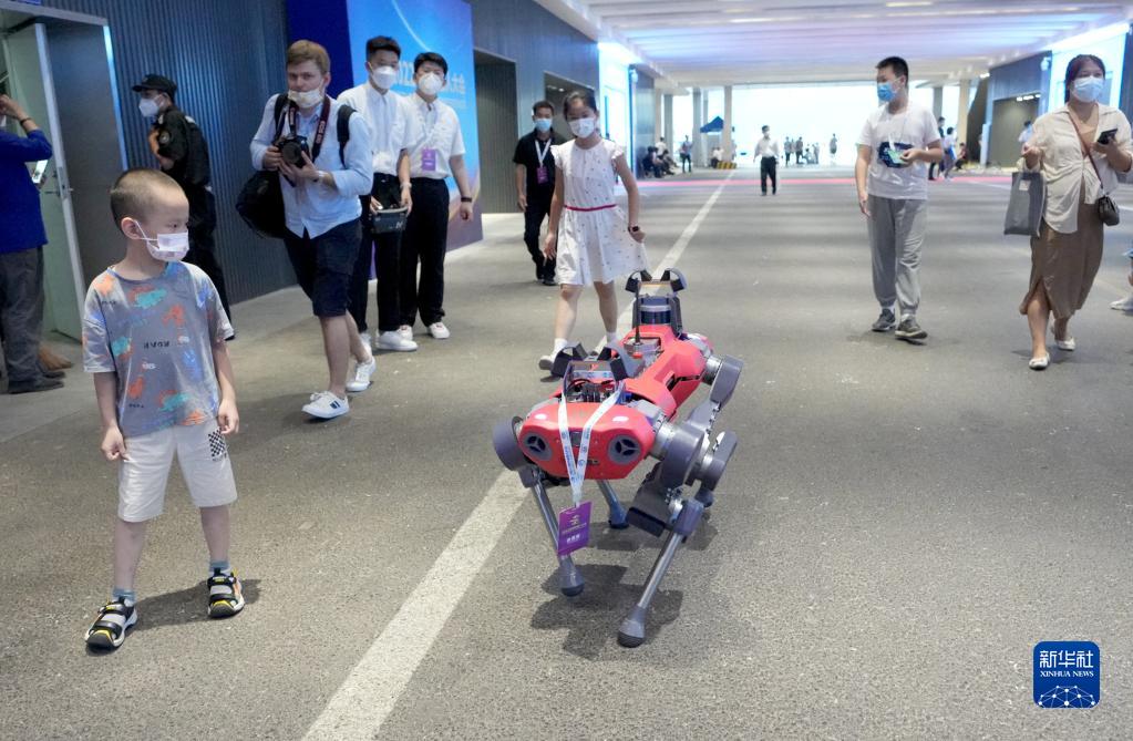 8月18日在2022世界機器人博覽會(huì )上拍攝的用于工業(yè)巡檢的“機器狗”。