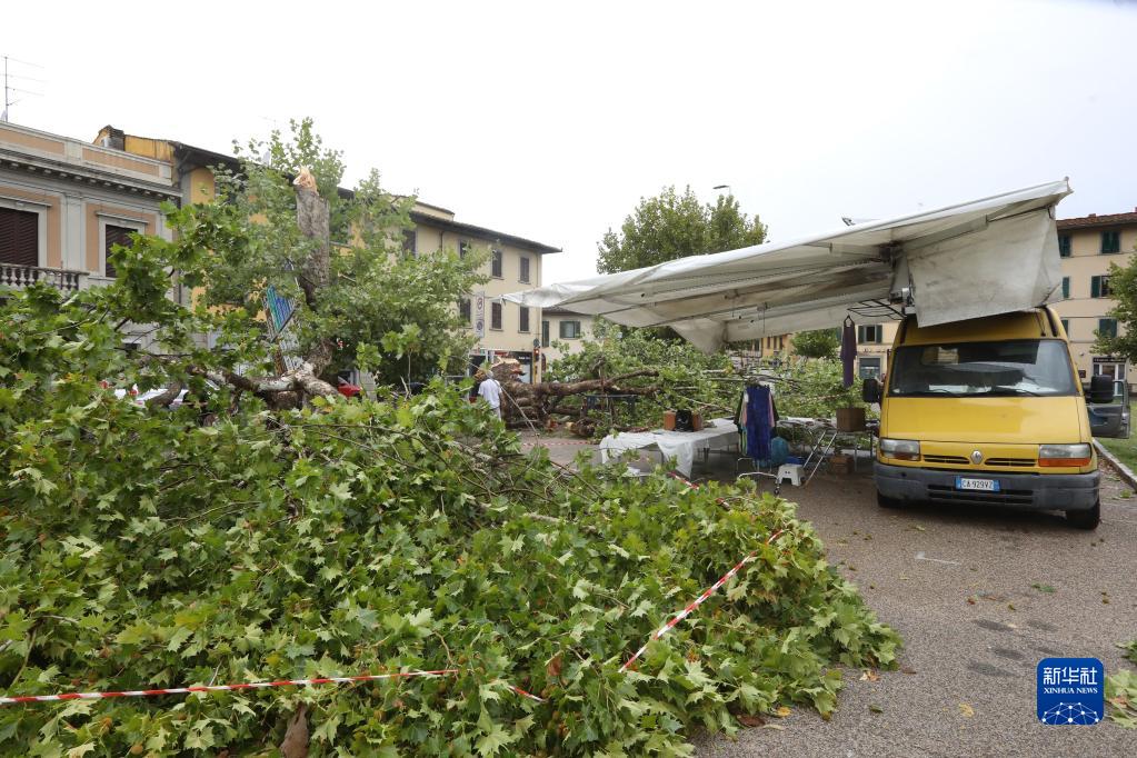 這是8月18日在意大利托斯卡納大區首府佛羅倫薩拍攝的被刮倒的樹(shù)木。