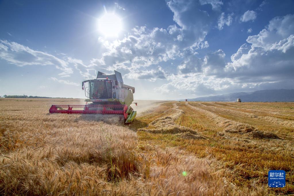 8月,新疆伊犁河谷上的昭蘇高原,連片的麥田陸續成熟,聯(lián)合收割機來(lái)回穿行忙碌,一片豐收景象。