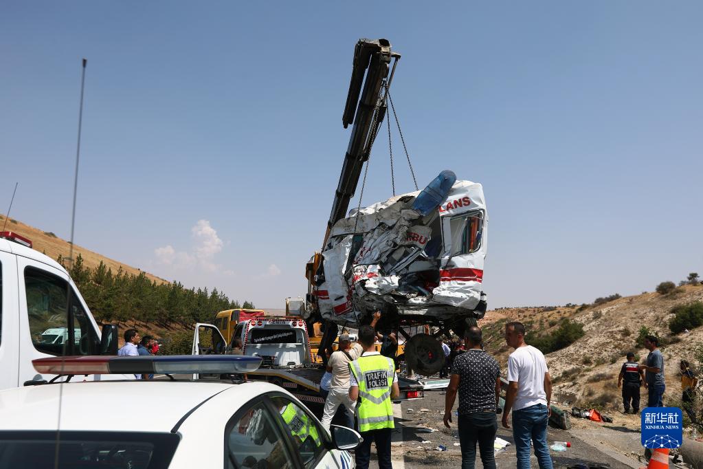 這是8月20日在土耳其加濟安泰普省拍攝的交通事故現場(chǎng)。