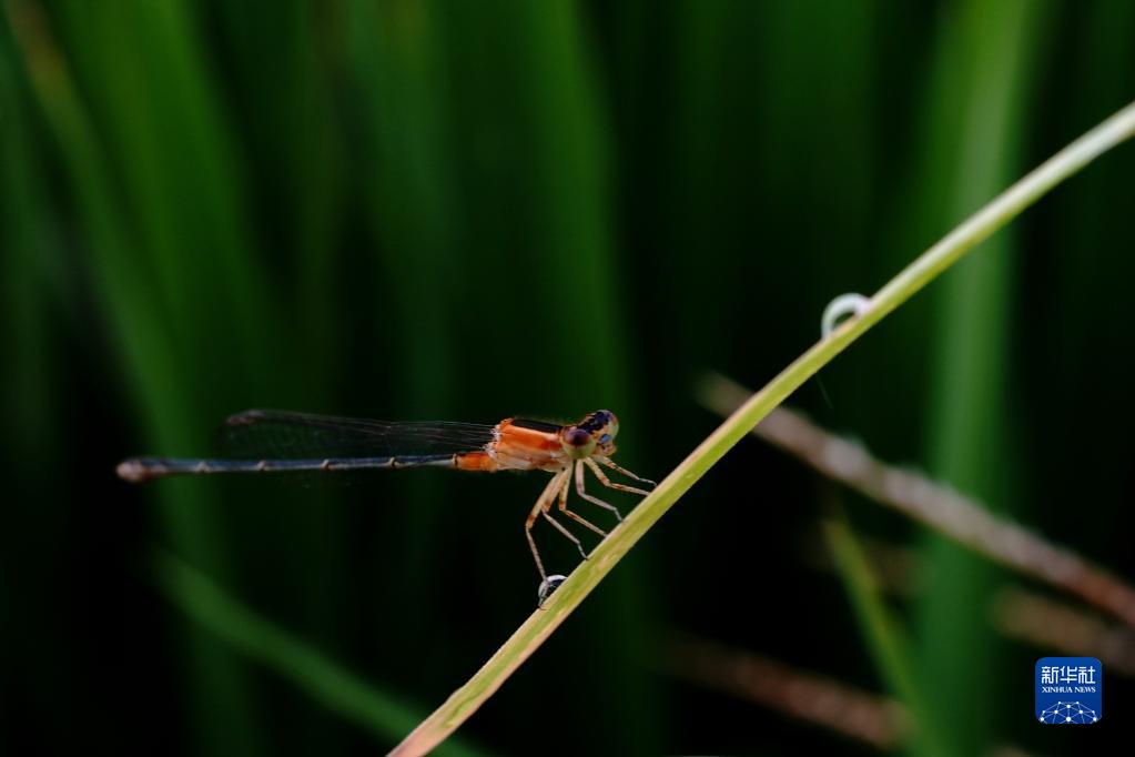 8月21日在上海松江區洞涇鎮一個(gè)家庭農場(chǎng)稻田里拍攝的豆娘。