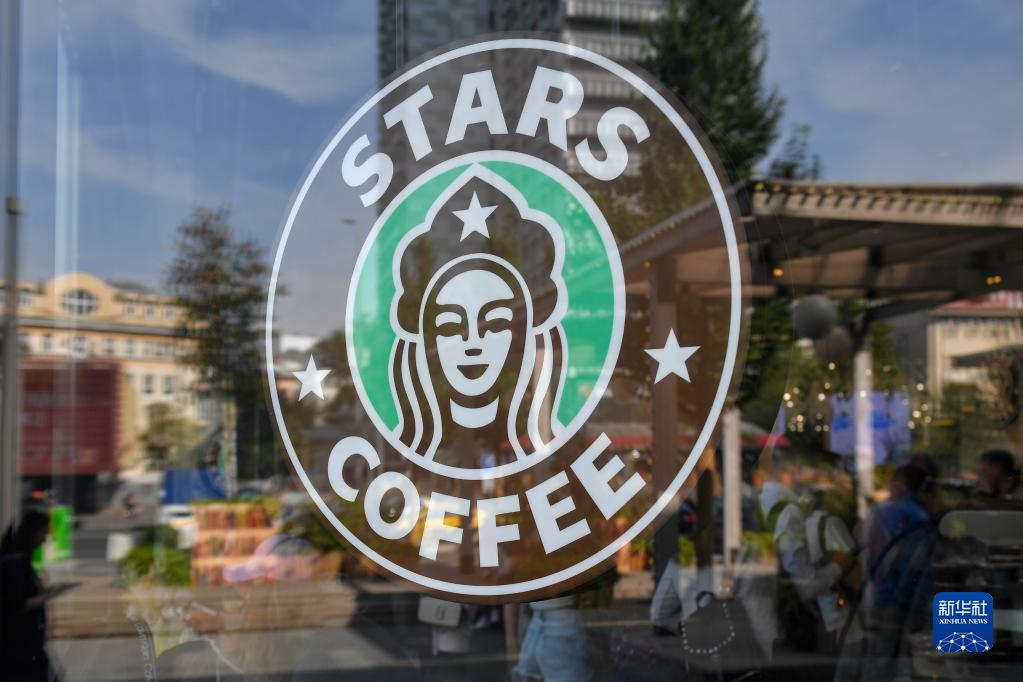 這是8月22日在俄羅斯莫斯科拍攝的“星咖啡”標識。