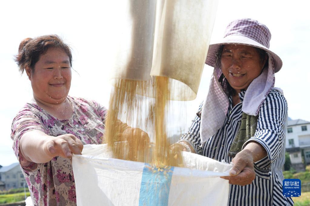 8月23日,村民在貴州省綏陽(yáng)縣旺草鎮萬(wàn)畝大壩搶收水稻。