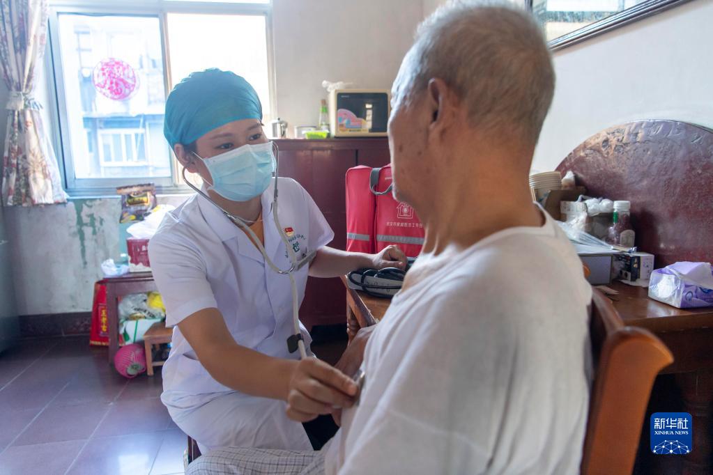 8月15日,黃瑩到居民熊華甫老人家中為他測量血壓。