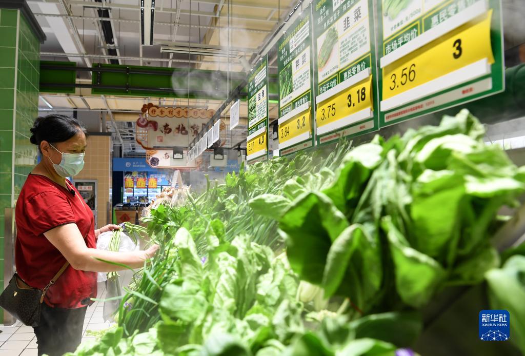 8月25日,市民在合肥市經(jīng)開(kāi)區芙蓉社區一家超市選購“惠民菜”。