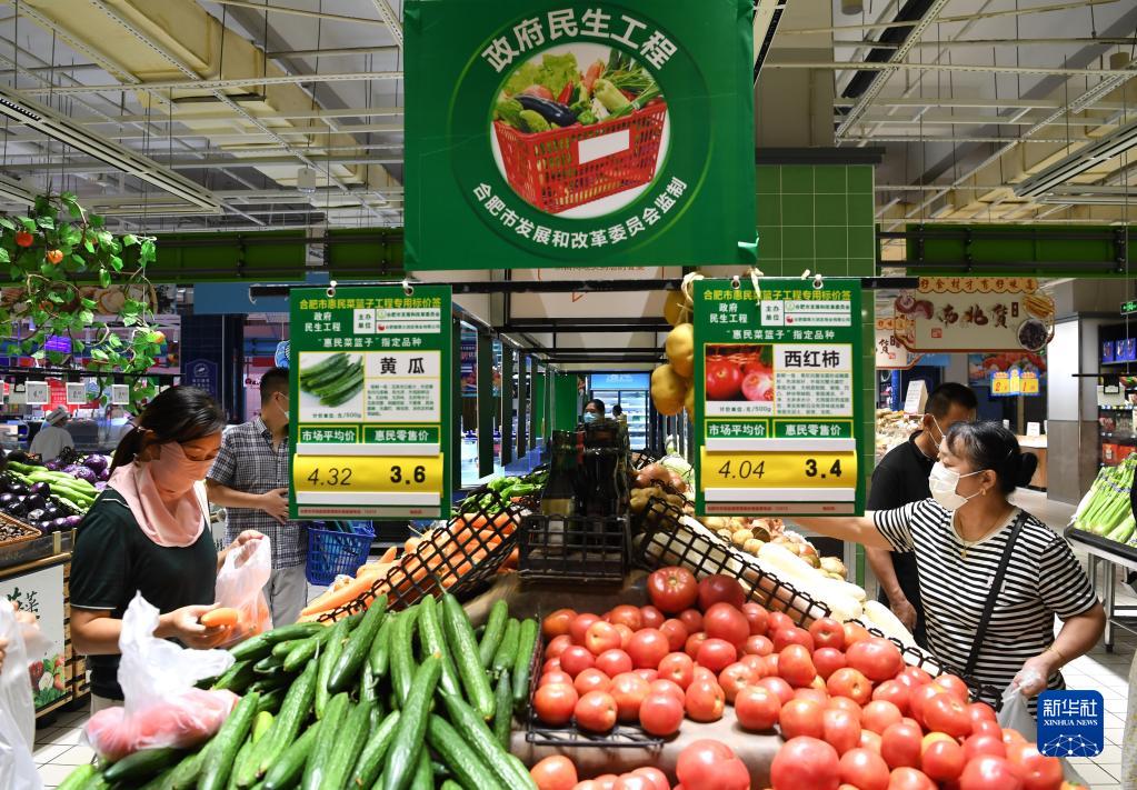 8月25日,市民在合肥市經(jīng)開(kāi)區芙蓉社區一家超市選購“惠民菜”。