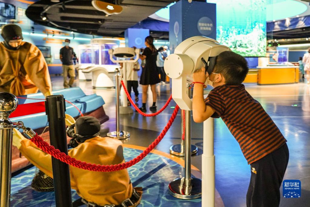 8月24日,小朋友在威海海洋科技館內參觀(guān)游玩。