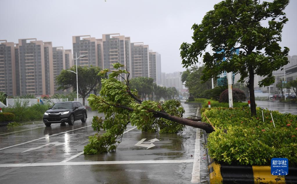8月25日在廣東陽(yáng)江市東門(mén)南路拍攝的倒伏樹(shù)木。