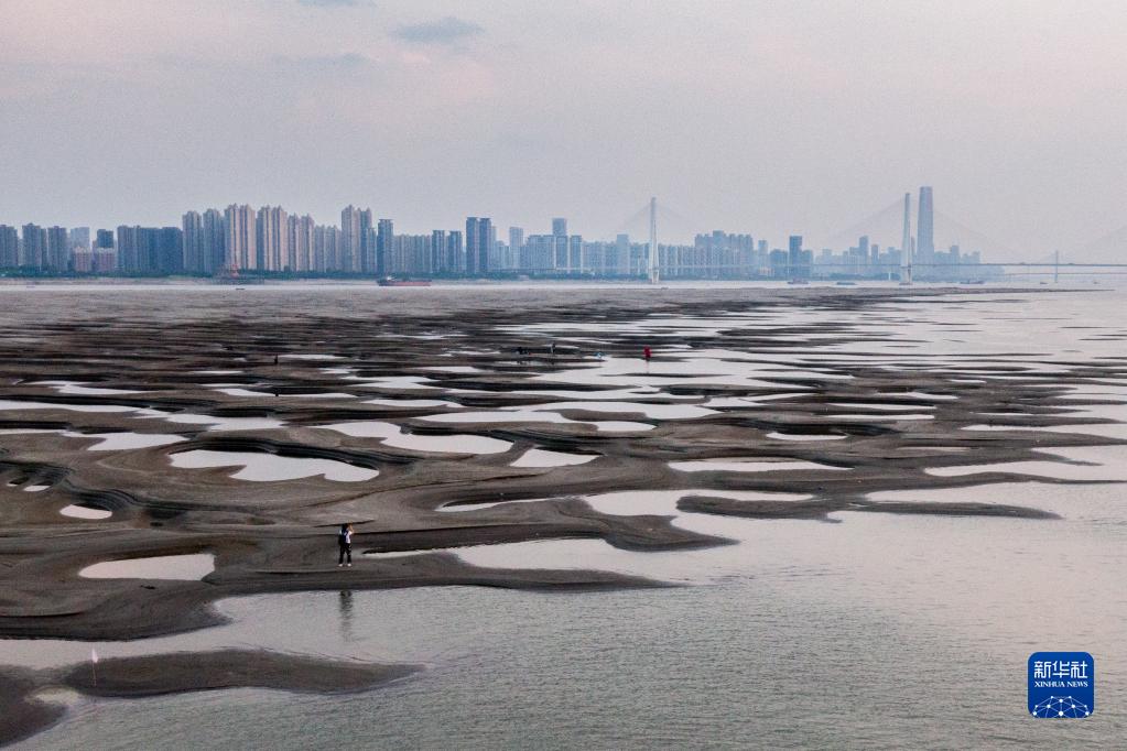 近日,長(cháng)江武漢段水位持續降低,武漢市天興洲露出大片灘涂。