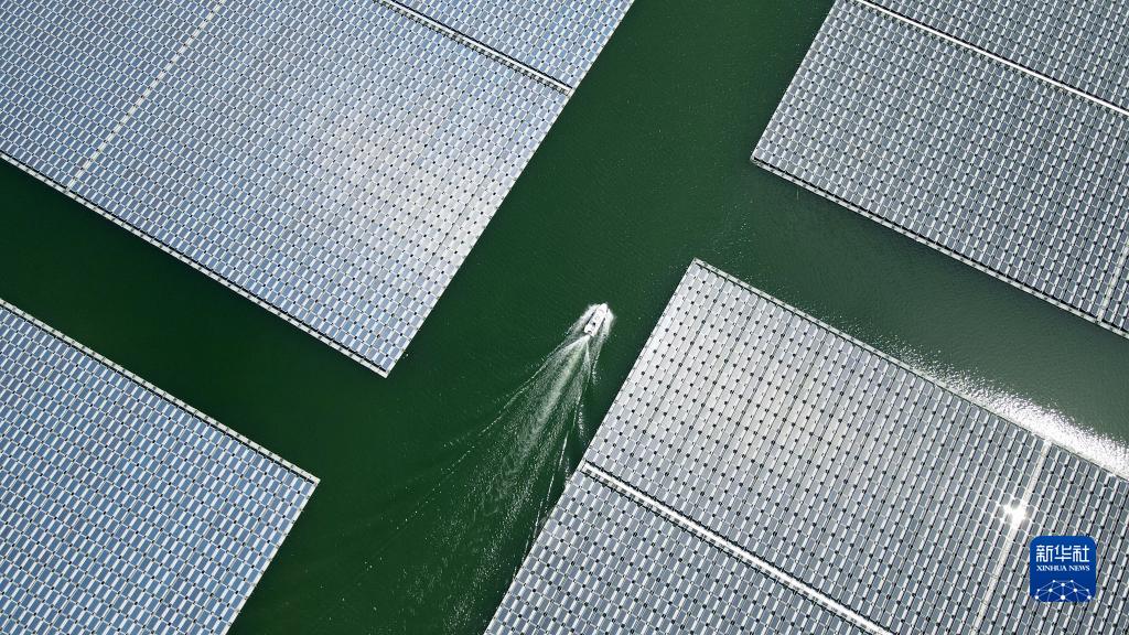8月25日拍攝的潁上縣毛圩水上光伏電站(無(wú)人機照片)。