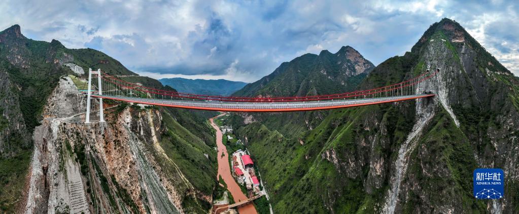 由中鐵大橋局承建的玉楚高速綠汁江大橋(8月25日攝,無(wú)人機全景照片)。