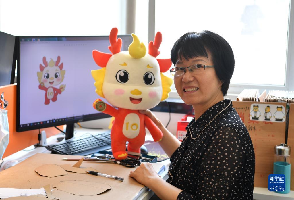 在安康毛絨玩具文創(chuàng )產(chǎn)業(yè)五大中心專(zhuān)家工作站內,毛絨玩具設計師熊燕在展示一款產(chǎn)品(2022年8月18日攝)。