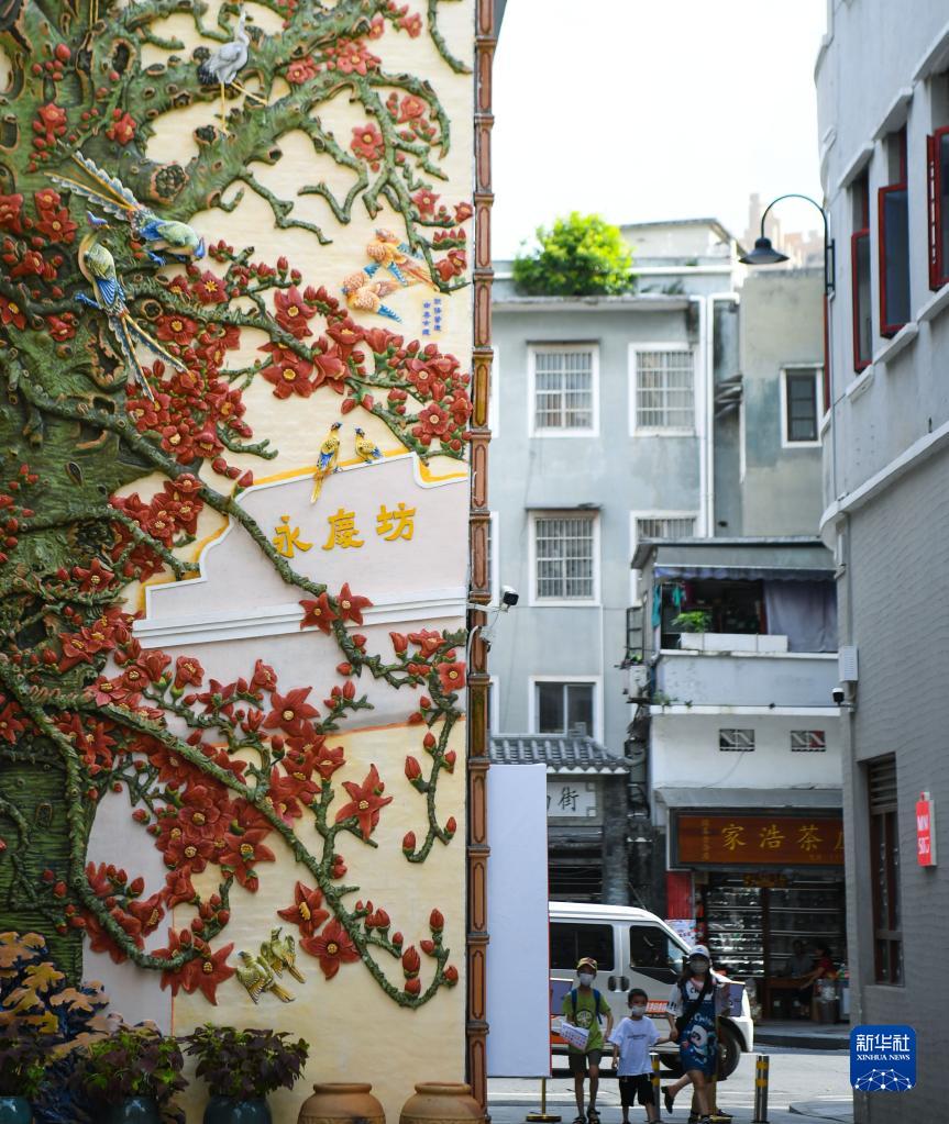 這是2022年7月19日在廣州永慶坊街頭拍攝的木棉樹(shù)灰塑。