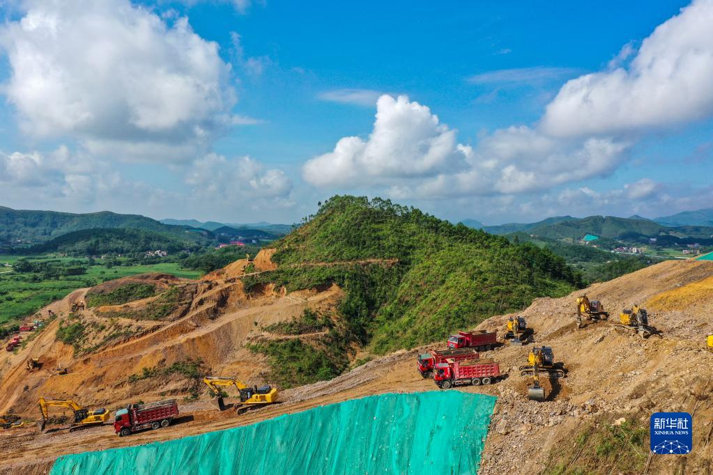 這是8月28日在廣西靈山縣拍攝的平陸運河馬道樞紐建設現場(chǎng)(無(wú)人機照片)。