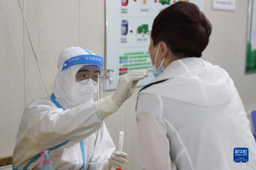 8月28日,在哈爾濱市香坊區一處核酸采樣點(diǎn),市民接受核酸采樣。