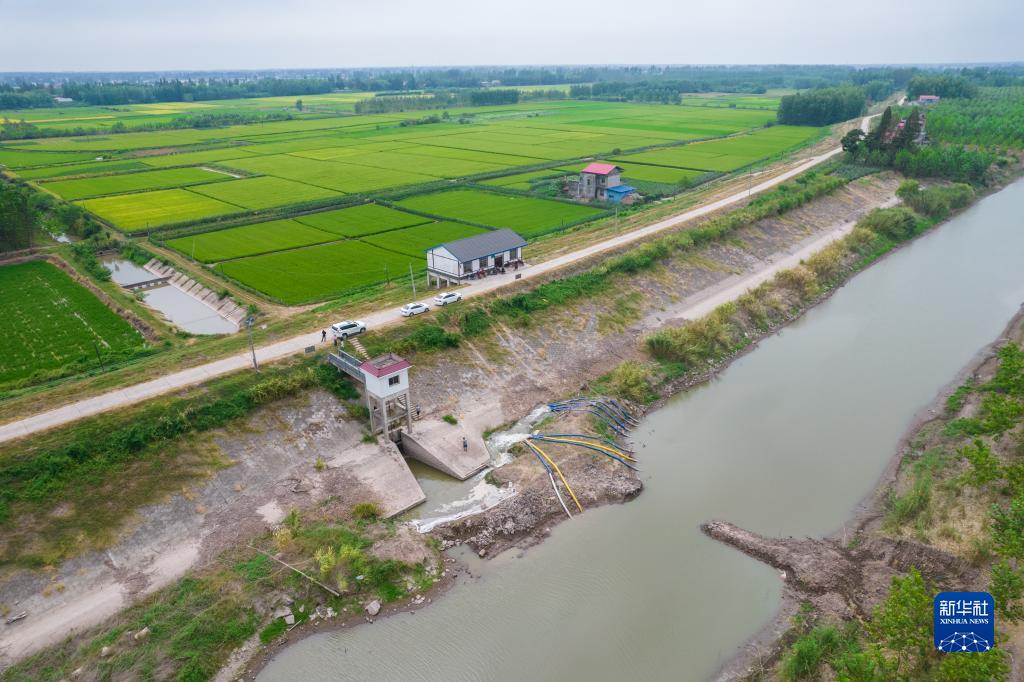 這是8月25日在湖南省常德市安鄉縣三岔河鎮拍攝的一處提水作業(yè)點(diǎn)(無(wú)人機照片)。