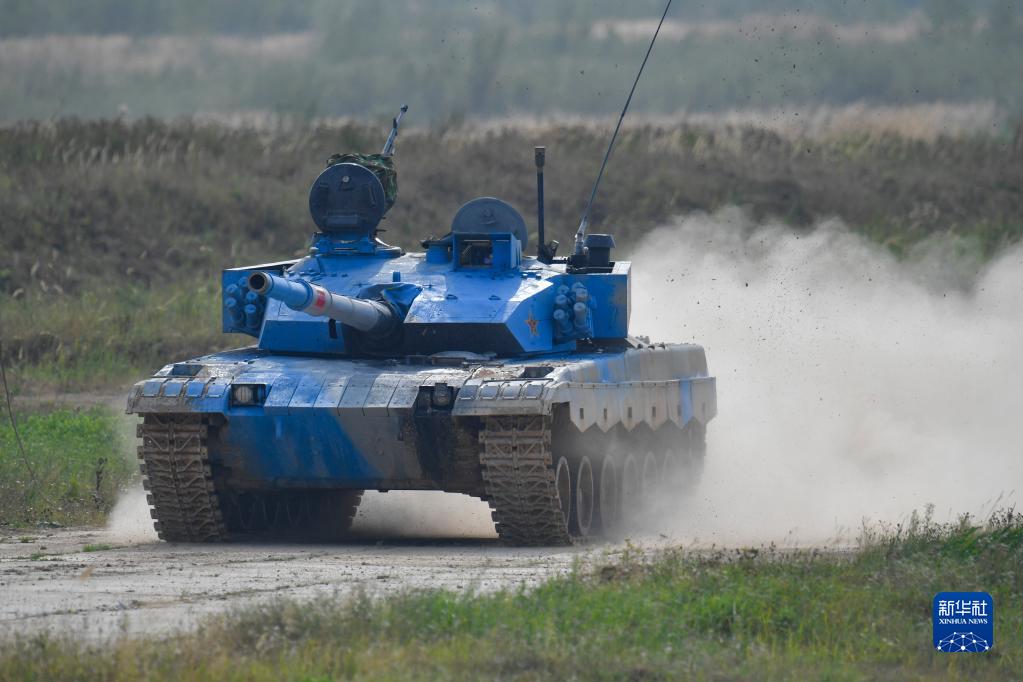 8月27日,在俄羅斯莫斯科州阿拉比諾靶場(chǎng),中國參賽隊96B坦克在比賽中。