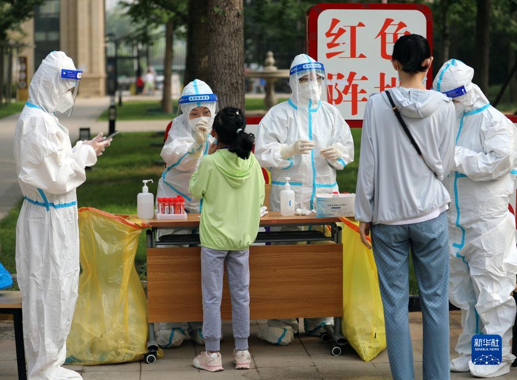 8月30日,在石家莊市眾美綠都小區核酸采樣點(diǎn),市民接受核酸采樣。