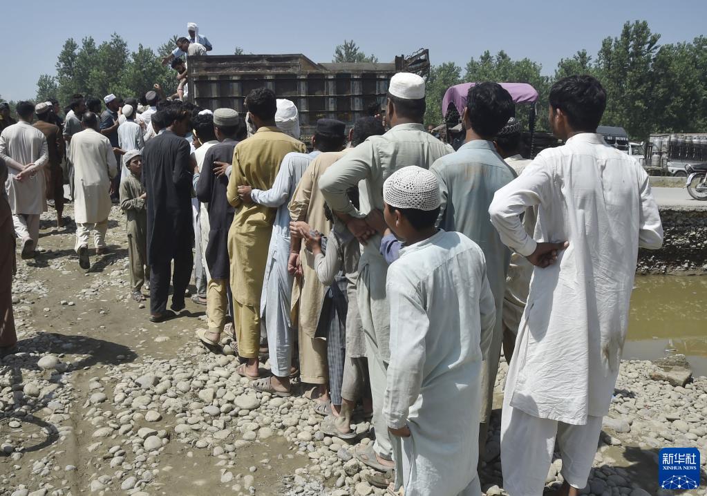 8月31日,在巴基斯坦西北部開(kāi)伯爾-普什圖省的賈爾瑟達地區,人們排隊領(lǐng)取救災物資。