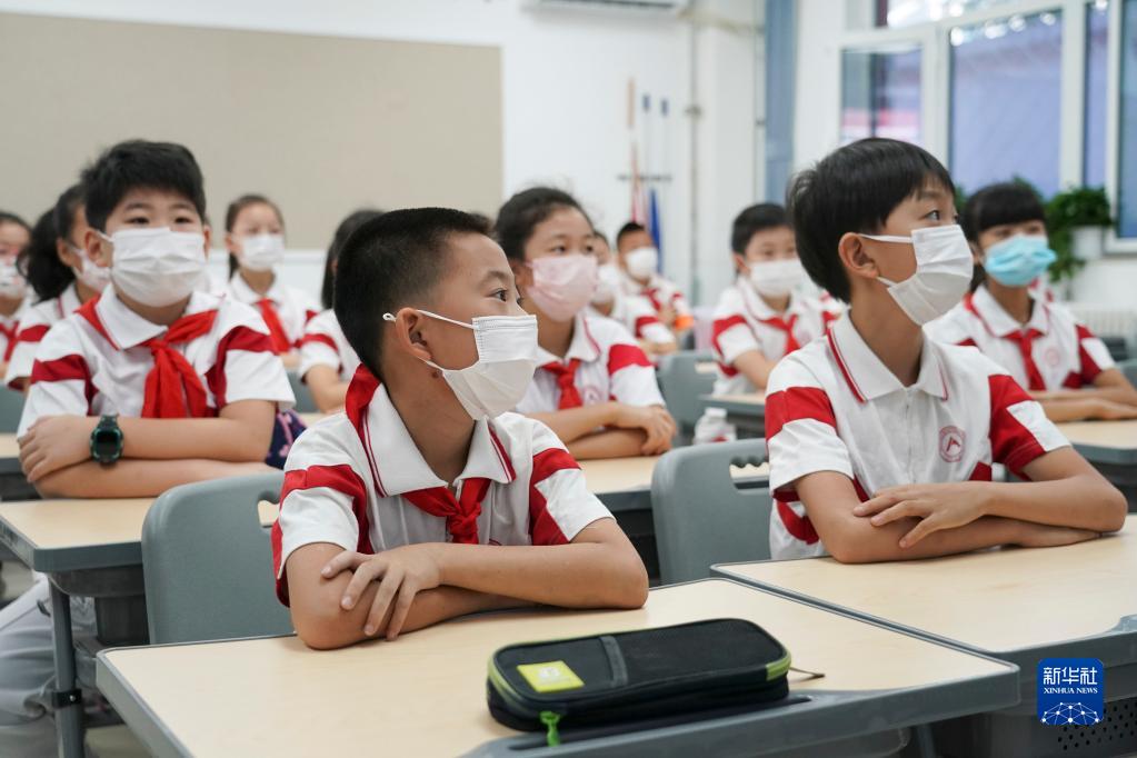 9月1日,在位于北京市海淀區的人大附中實(shí)驗小學(xué),五年級學(xué)生上開(kāi)學(xué)第一課。