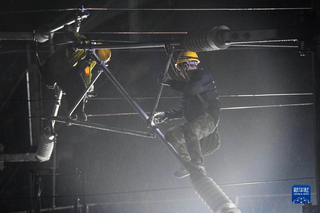 9月1日凌晨,施工人員在重慶鐵路樞紐東環(huán)線(xiàn)磨心坡站作業(yè)。當日凌晨,由中鐵八局承建的重慶鐵路樞紐東環(huán)線(xiàn)磨心坡站信號設備倒替施工等作業(yè)項目順利完成,標志著(zhù)東環(huán)線(xiàn)引入既有襄渝線(xiàn)主體工程完工,為東環(huán)線(xiàn)全線(xiàn)開(kāi)通提供了堅實(shí)保障。重慶鐵路樞紐東環(huán)線(xiàn)串聯(lián)了重慶北站、重慶江北國際機場(chǎng)等綜合交通樞紐,是以貨運為主、兼顧沿線(xiàn)客運的客貨共線(xiàn)鐵路,對完善重慶客貨運布局有重要意義。新華社記者 王全超 攝