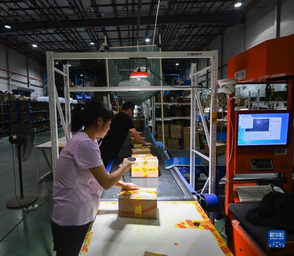 9月2日,在杭州綜合保稅區一家跨境保稅倉內,工作人員掃碼打包跨境電商保稅進(jìn)口商品?!皵底志C?!本C合服務(wù)平臺提升了跨境保稅倉貨物的流轉效率,為企業(yè)節省時(shí)間和費用。